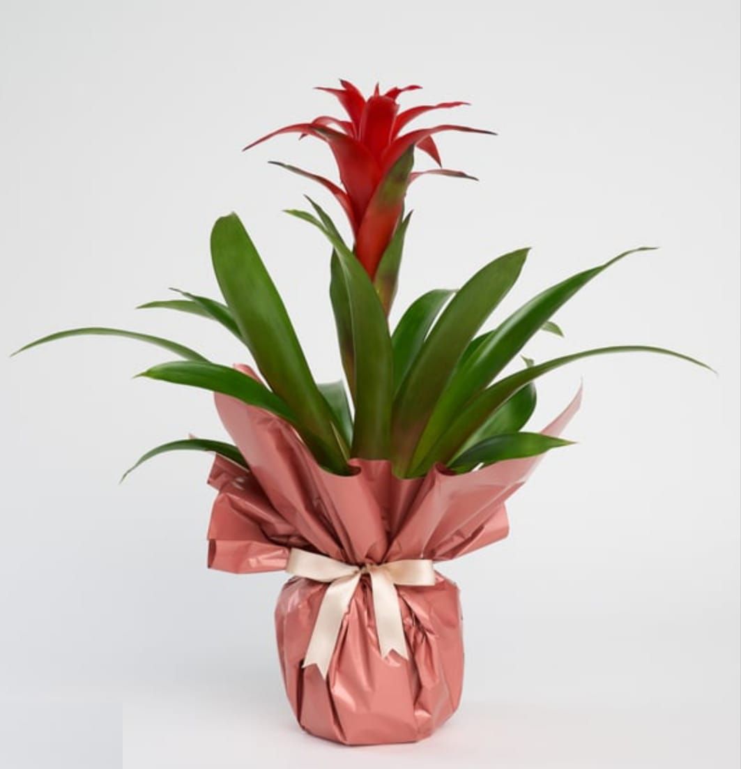Yaklaşık 50 - 60 cm yüksekliğinde, çarpıcı kırmızı çiçekli taç yapraklara sahip Guzmanya, tropikal görünümüyle iç mekan dekorasyonuna canlılık katar. Parlak yeşil yaprakları ve gösterişli çiçeği ile dikkat çeken bu bitki, hem hediye hem de yaşam alanları için şık bir tercihtir.