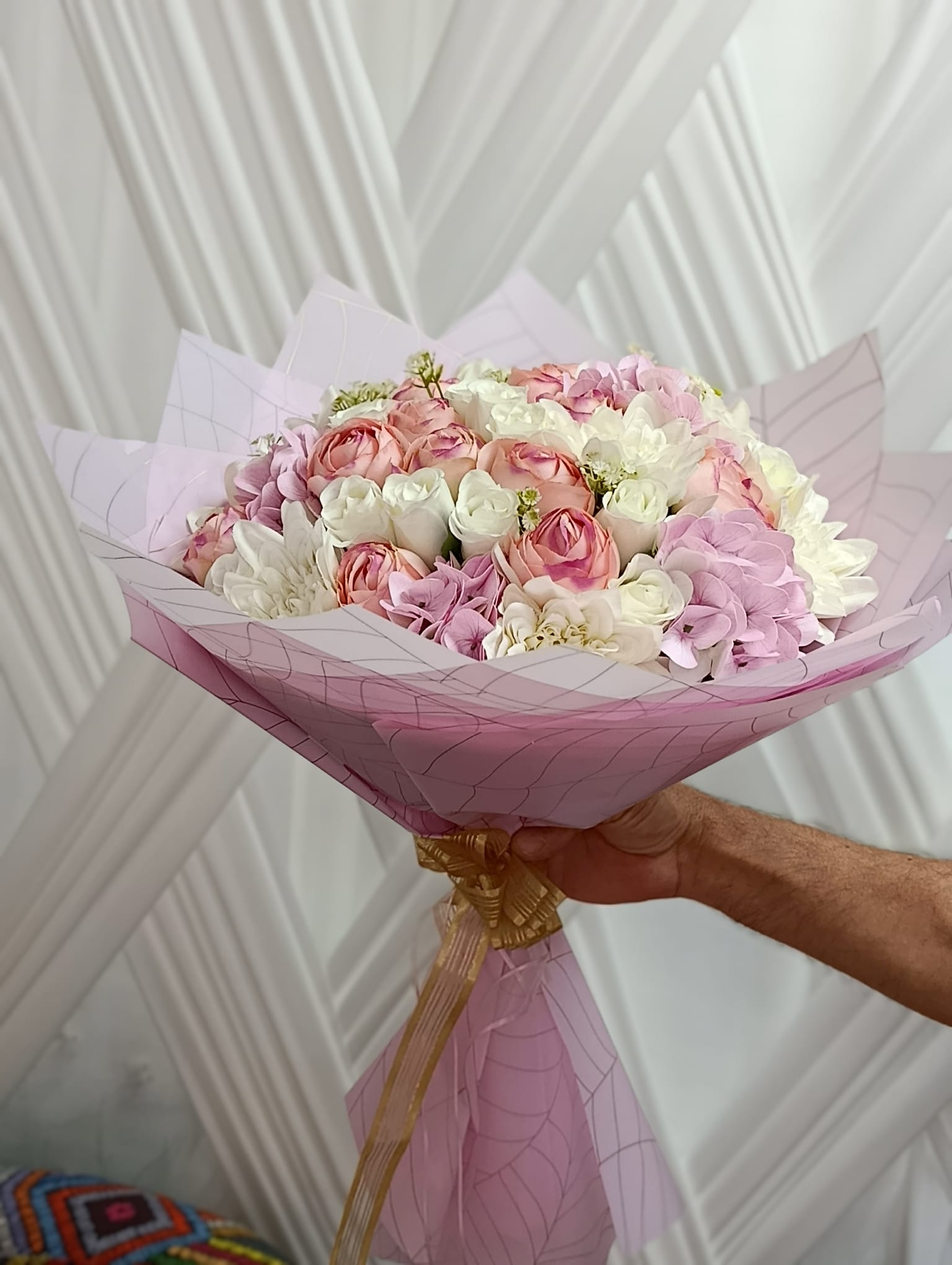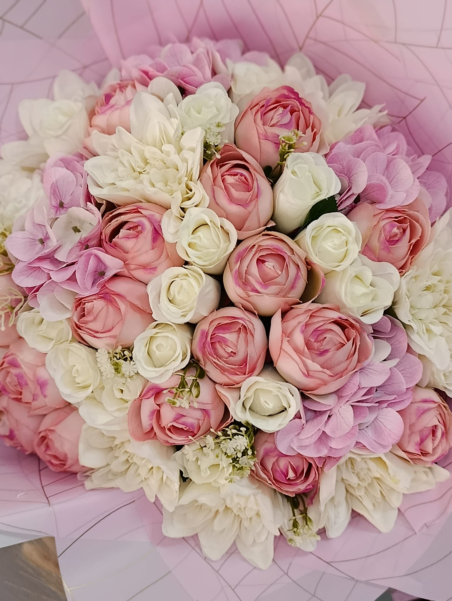 Şakayıklarla Süslenmiş Yapay Buket – Zarif ve Kalıcı Güzellik